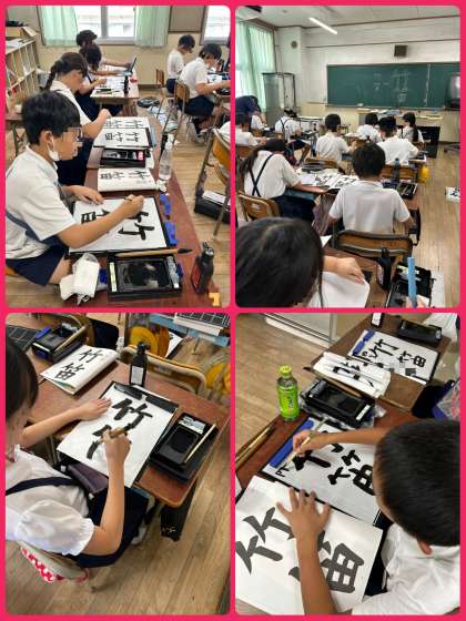 習字の時間の様子です。良い姿勢で取り組んでいました。