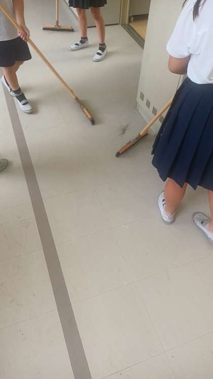 職員室前のお掃除です。