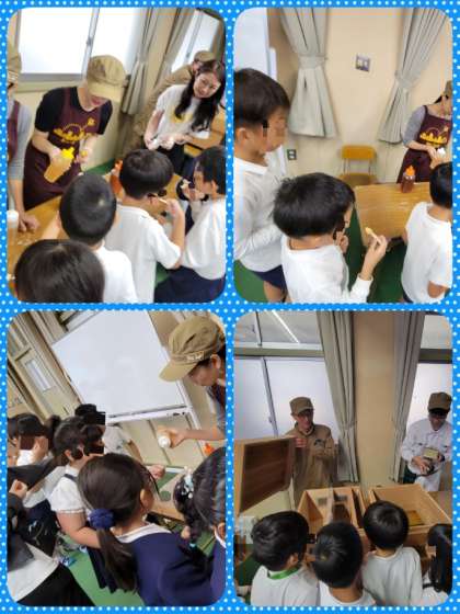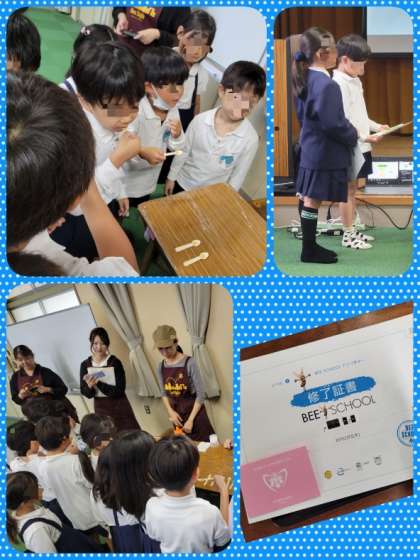 ミツバチのお話や、養蜂道具の紹介、ミツバチの生態観察、季節のハチミツティスティングなどがありました。