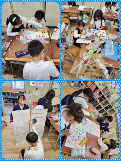 1年生を招待する「おもちゃランド」の準備が進んでいます。
