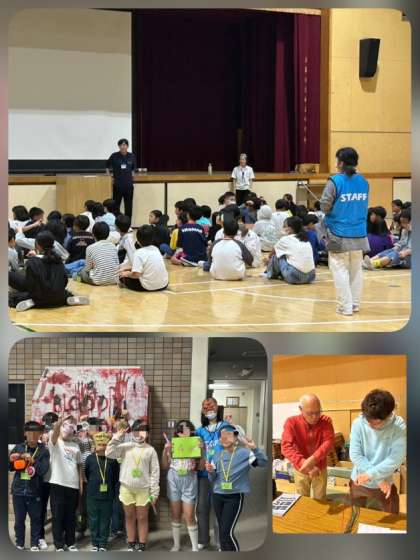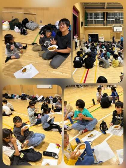 加美青少年指導員会のみなさんによる「校内一泊体験」の様子です。