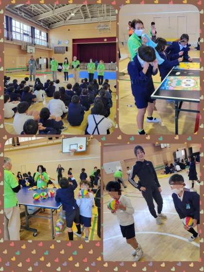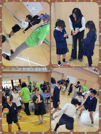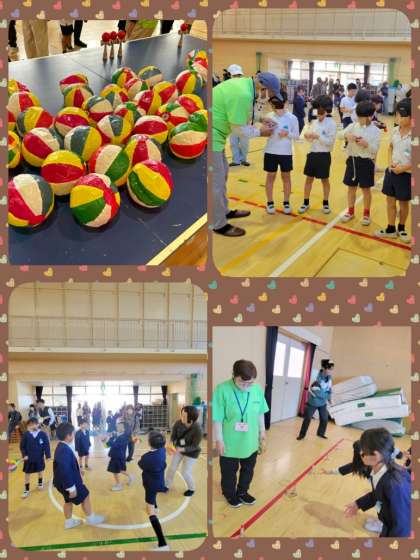 1年生と2年生が体験した「伝承遊び」の様子です。地域にお住まいの方をお招きして、昔のいろいろな遊びを教わって、一緒に楽しく遊びました。
