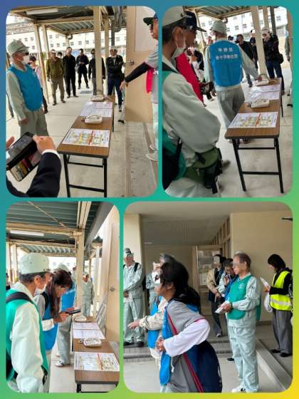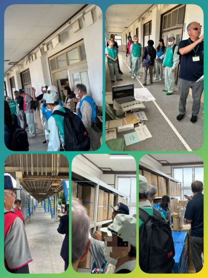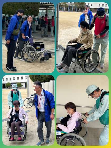 地域の防災訓練がありました。備蓄倉庫の確認や車いす、非常電話回線の確認などがありました。