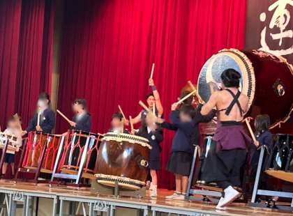 子どもたちも実際に演奏をさせていただきました。みんなでリズムを合わせて演奏することができました。