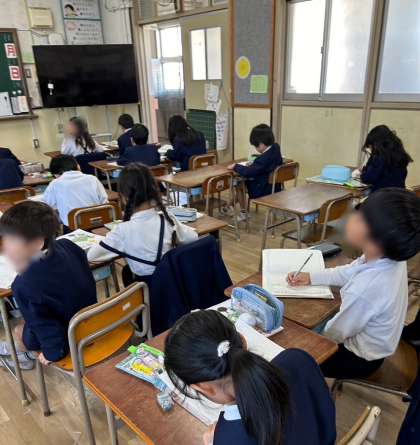 2年生の算数の学習の様子です。いろいろな段のかけ算の問題を解いています。
