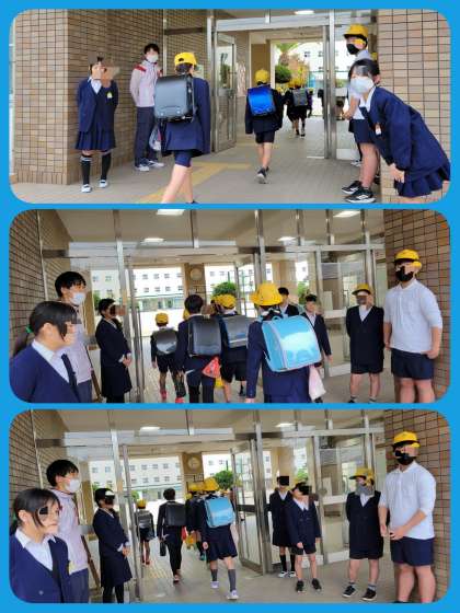 代表委員会の子ども達が、大きな声であいさつをしています。