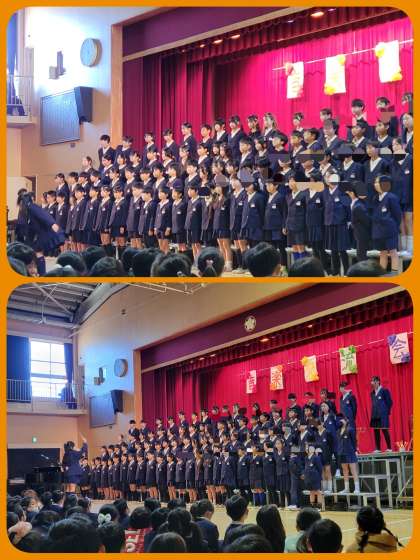 5年生は、リコーダーで演奏した後、5年全員で「鳥になって」を歌いました。