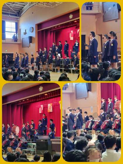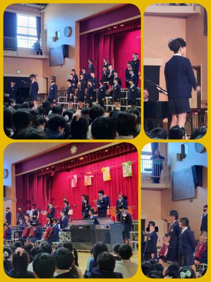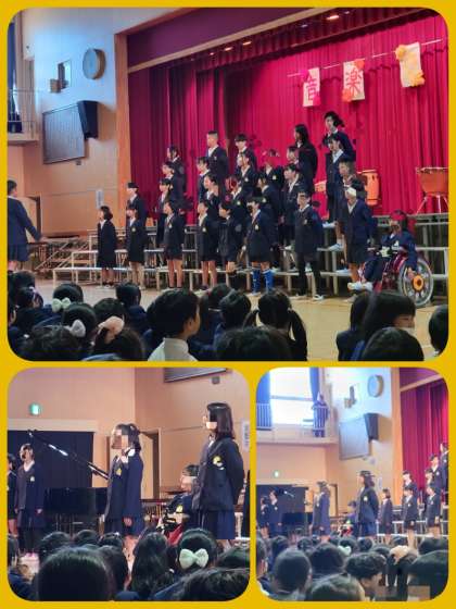 6年生は、各クラスで「つばさをください」「この星に生まれて」「栄光の架け橋」を歌い、「愛にできることはまだあるかい」「アフリカンシンフォニー」「キセキ」を合奏しました。