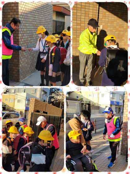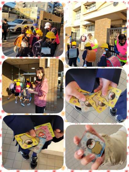 子ども達は、元気にあいさつをし、カードをもらっていました。