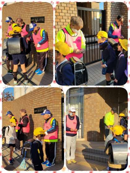 地域のみなさんに来ていただいて、「あいさつ運動」がありました。