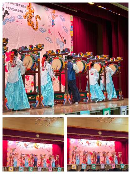 6年生の三面太鼓の様子です。息がをあわせて叩いていました。とても力強い演奏でした。