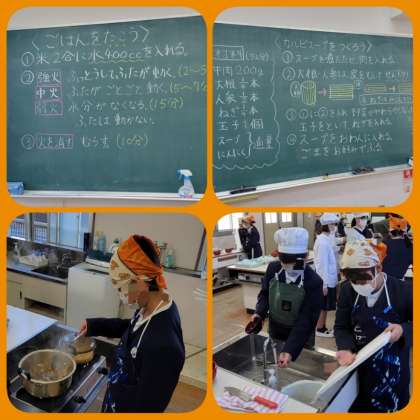 調理実習で、ごはんを炊いてカルビスープを作りました。