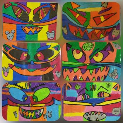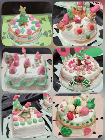 1年生は、「にらみねこ」と「ケーキ」を展示しています。