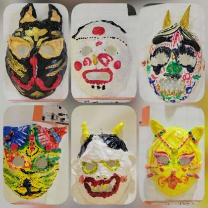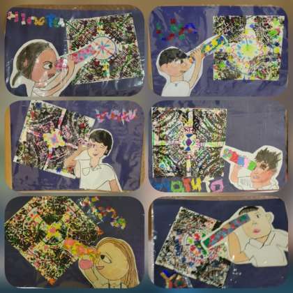 3年生は、「世界の国々のお面」と「万華鏡の世界」を展示しています。