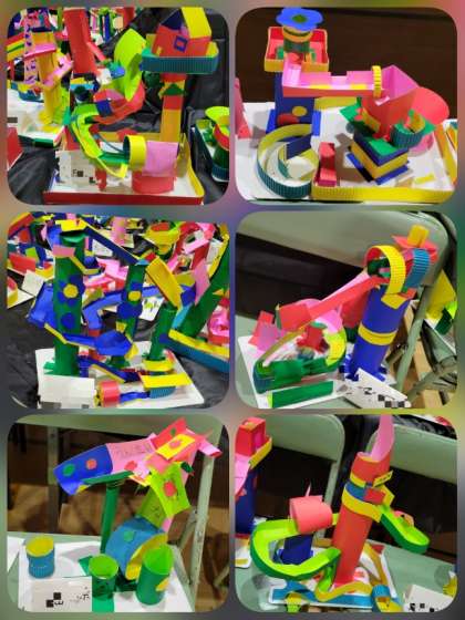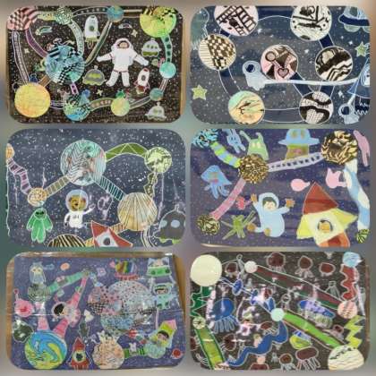 4年生は、「ビー玉のぼうけん」と「宇宙へGO!」展示しています。