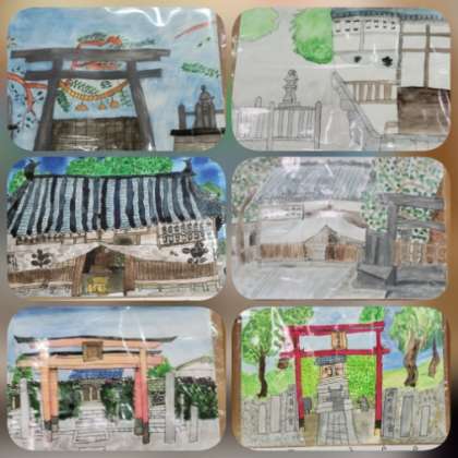 5年生は、「旭神社」と「美しく立つはり金」を展示しています。