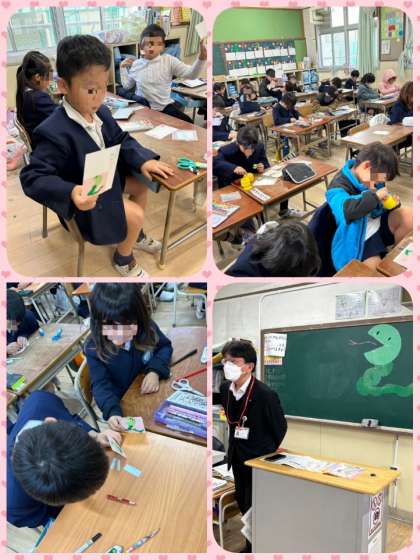 郵便局の方に来ていただいて、年賀状の書き方を教えてもらいました。