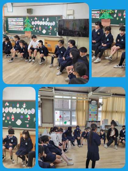 お楽しみ会で、「クリスマスバスケット」をしています。