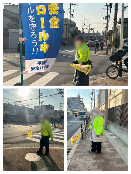 今日の見守り隊の様子です。とても寒いですが、子どもたちの安全を守ってくれています。