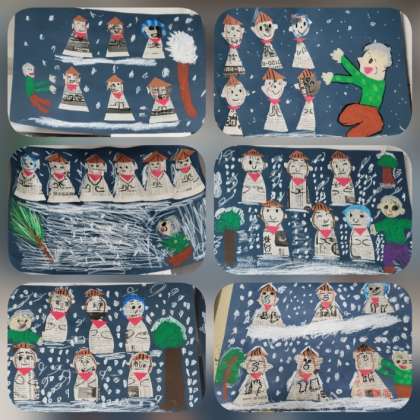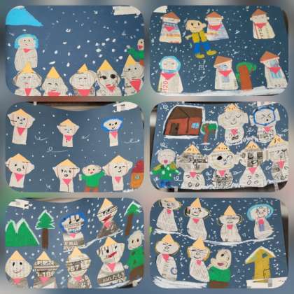 「かさこじぞう」の絵が掲示してあります。