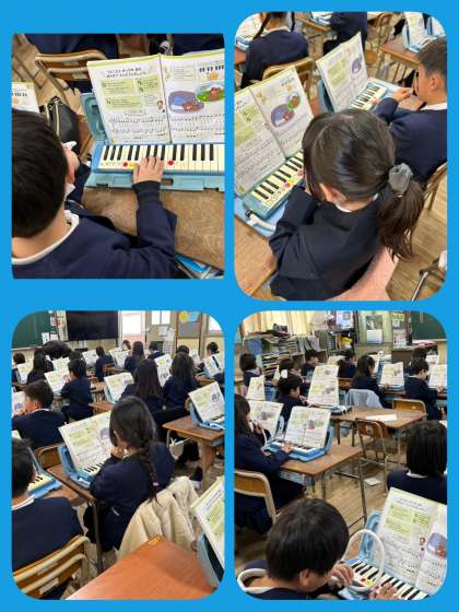鍵盤ハーモニカで「こぐまの2月」を演奏しています。
