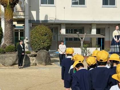 今日の児童朝会では新しく赴任された先生の紹介がありました。