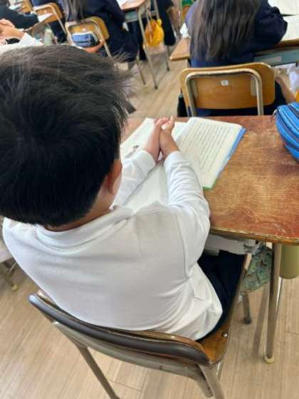 真剣に物語の世界に入り込んで学習しています。