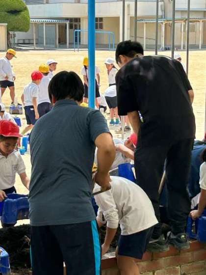 生活科でトマトの苗を植えました。実がなるのが楽しみですね。