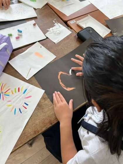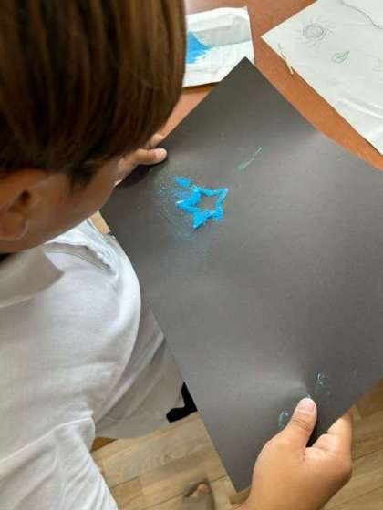 チョークの粉とボンドで作品を作っています。