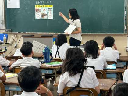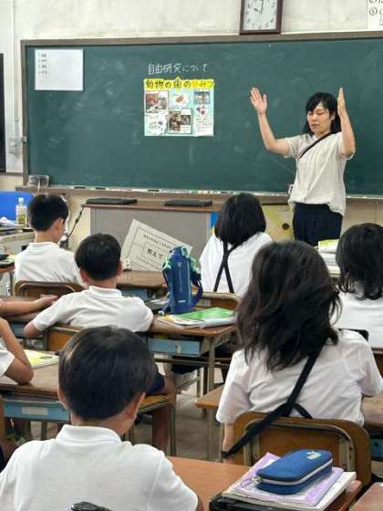 夏休みの自由研究について説明を聞いています。