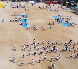 加美連合町会防災部会、平野消防署、平野区役所まちづくり協同課をはじめとする地域・保護者の皆様の協力のもと、「地域合同防災・避難訓練」を行うことができました。