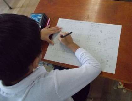 写真は1年生の「音読」、2年生の「百ます計算」です。