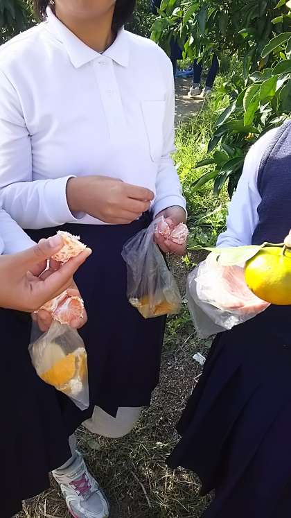 平岡農園にてみかん狩りをしています。
