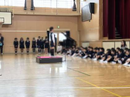 本日は土曜授業で「入学お祝い集会」を行いました。初めて、1〜6年生が講堂に集合して顔合わせをしました。