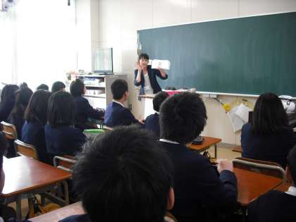 加美中学校より3名の先生に来ていただき、6年生に授業をしていただきました。