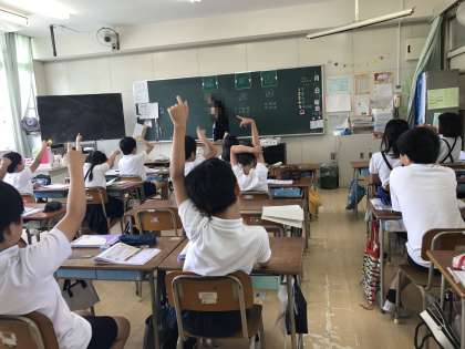 今日は、5年生の学級を参観しました。「因」「政」「編」の3字を学習していました。全員で空書きをしていました。