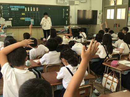 3年生は、栄養指導の学習をしました。今回のテーマは「飲み物」についてです。飲み物には砂糖が何グラム入っているのかなと予想を立てました。