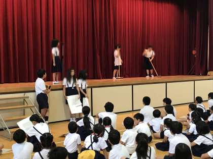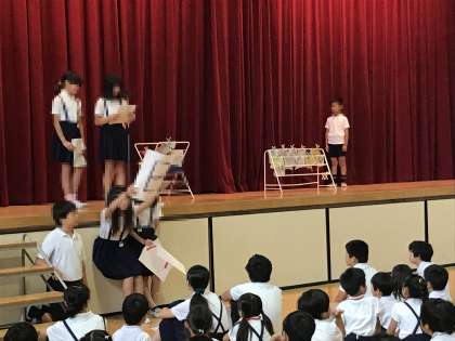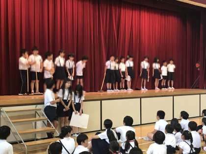 今日は児童集会の曜日でした。今回は、美化委員会の発表でした。