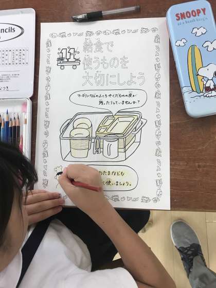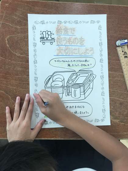 次に、保健給食委員会を参観しました。こちらは、各学級に配布する給食カレンダーを仕上げていました。