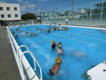 三年生は、プール納めをしました。今まで一生懸命泳いだ成果を発表しました。