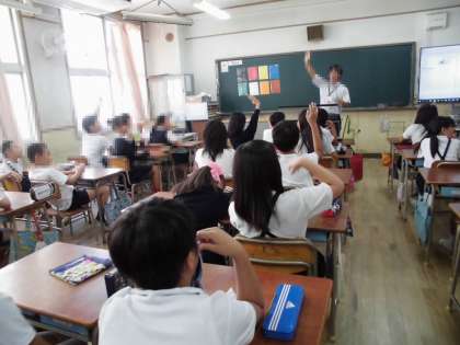 4年生は外国語学習を行いました。何色が好きかな?と音楽や遊びを交えて学習することができました。