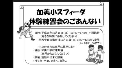 明日の天候が不安定のため、延期日の予定をお知らせします。