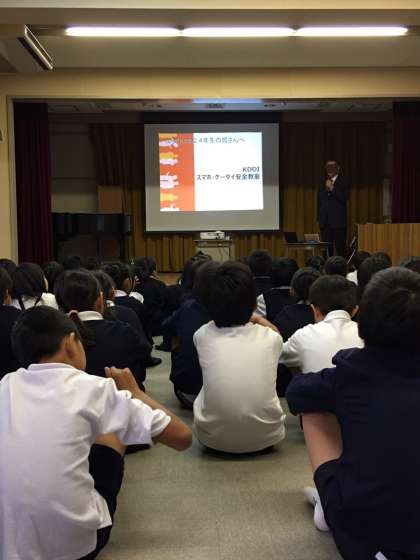 KDDIの方に来ていただき、スマホなどの便利さと危険な点を教えていただきました。