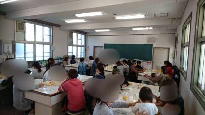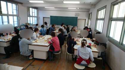 保護者の皆様、子ども達がいただいている給食を試食してもらいました。