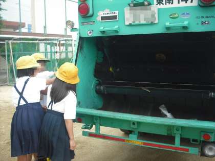 ごみの回収物によって、パッカー車から流れる音楽を変えていることや、普段見ることができないパッカー車の中をみせてもらったりしました。