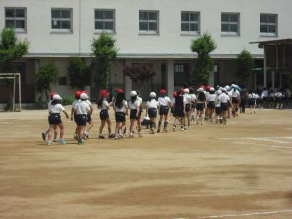 その後は、津波警報が発令された想定で、3階以上の教室や廊下に避難です。