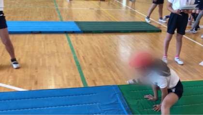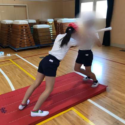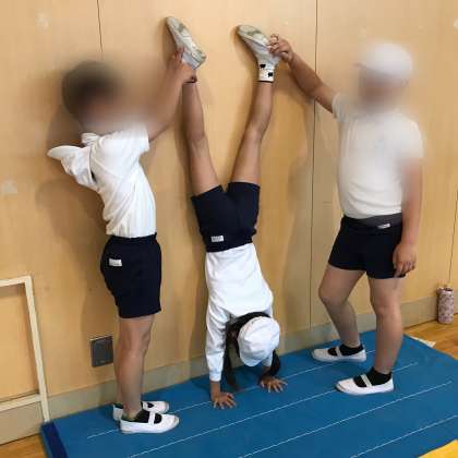 今日は、マット運動の発表会を行いました。何度も練習した技を繋げて、友達に発表しました。
