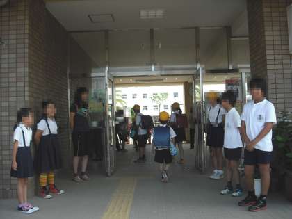 6/23(月)から、代表委員会の児童が玄関で、あいさつ運動を行っています。