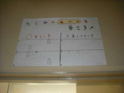4〜6年生を対象に、「ろうかを安全に歩こう」というテーマでポスター募集を校内で行いました。