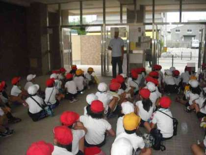 いもの苗を植えている、加美グランドに出発する前のようすです。
